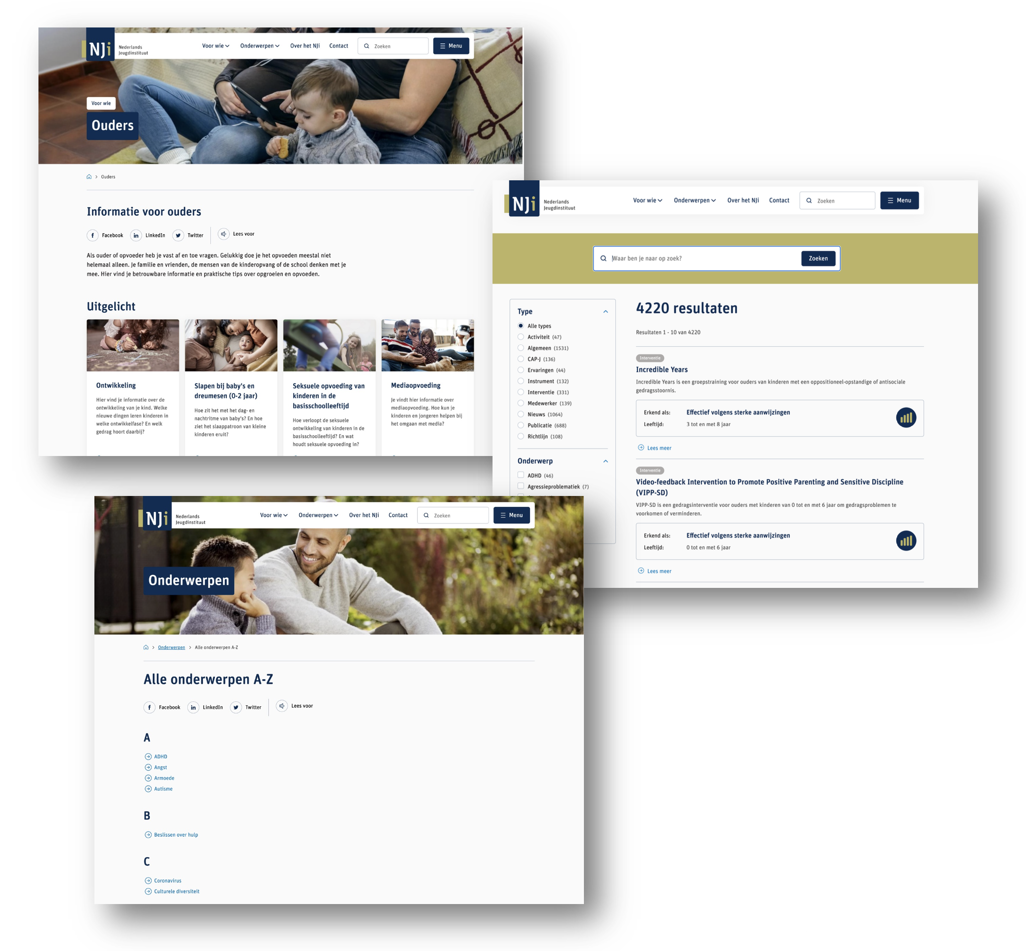 Rebuild, nieuwe UX, re-design en doorontwikkeling van meerdere digitale uitingen voor het Nederlands jeugdinstituut