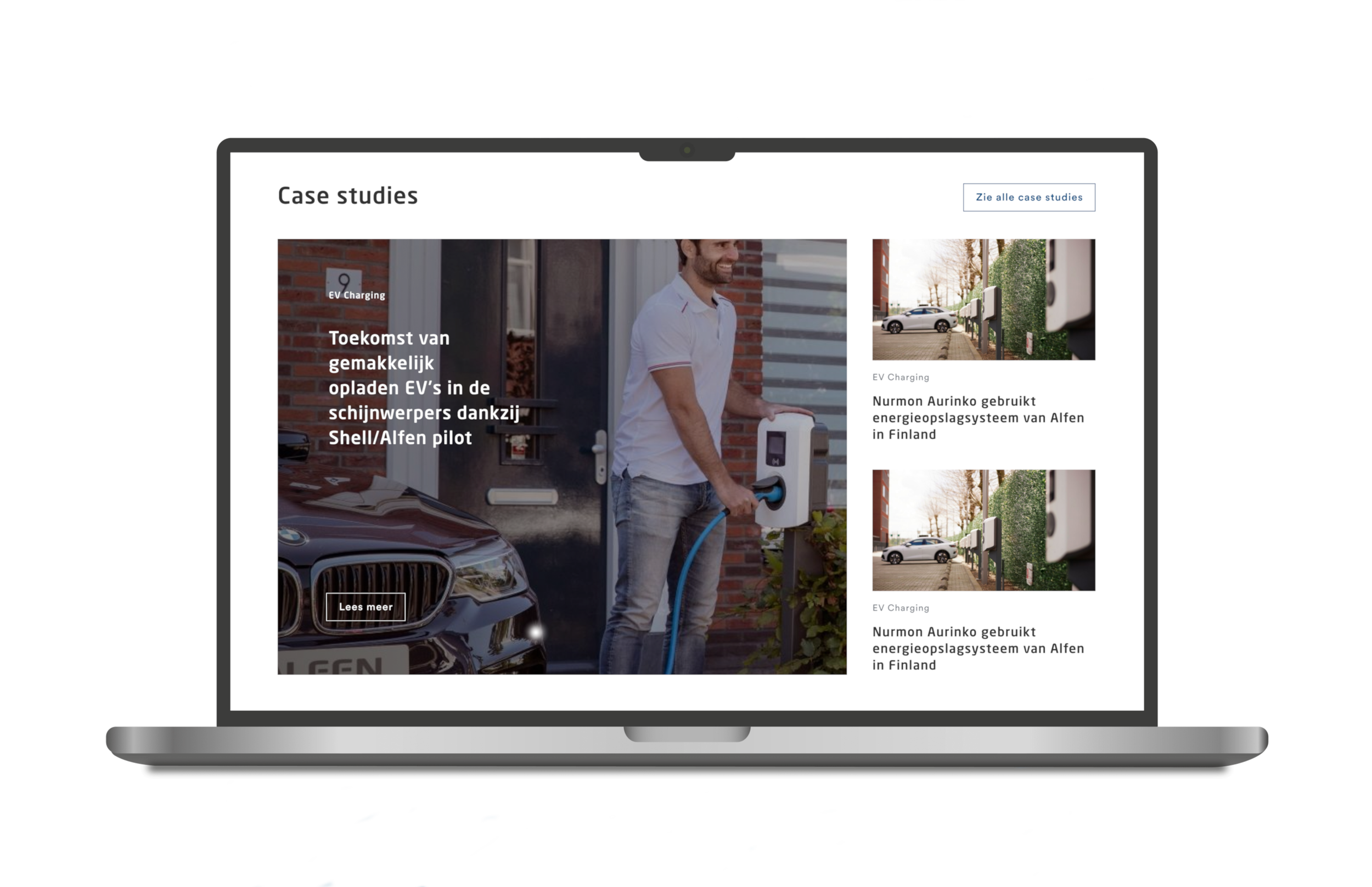 Alfen is een grote speler in de energiemarkt, maar heeft ook te maken met stevige concurrentie. Daarom is het belangrijk dat Alfen niet alleen productinformatie en content aanbiedt gericht op directe sales, maar ook haar kennis en kunde duidelijk in beeld weet te brengen. Zo positioneert het bedrijf zich als goede partner voor de toekomst met visie, kennis en knowhow. Deze thought leadership content wordt gecentraliseerd in een insight center en vanuit daaruit verspreidt op verschillende kanalen voor lead generation
