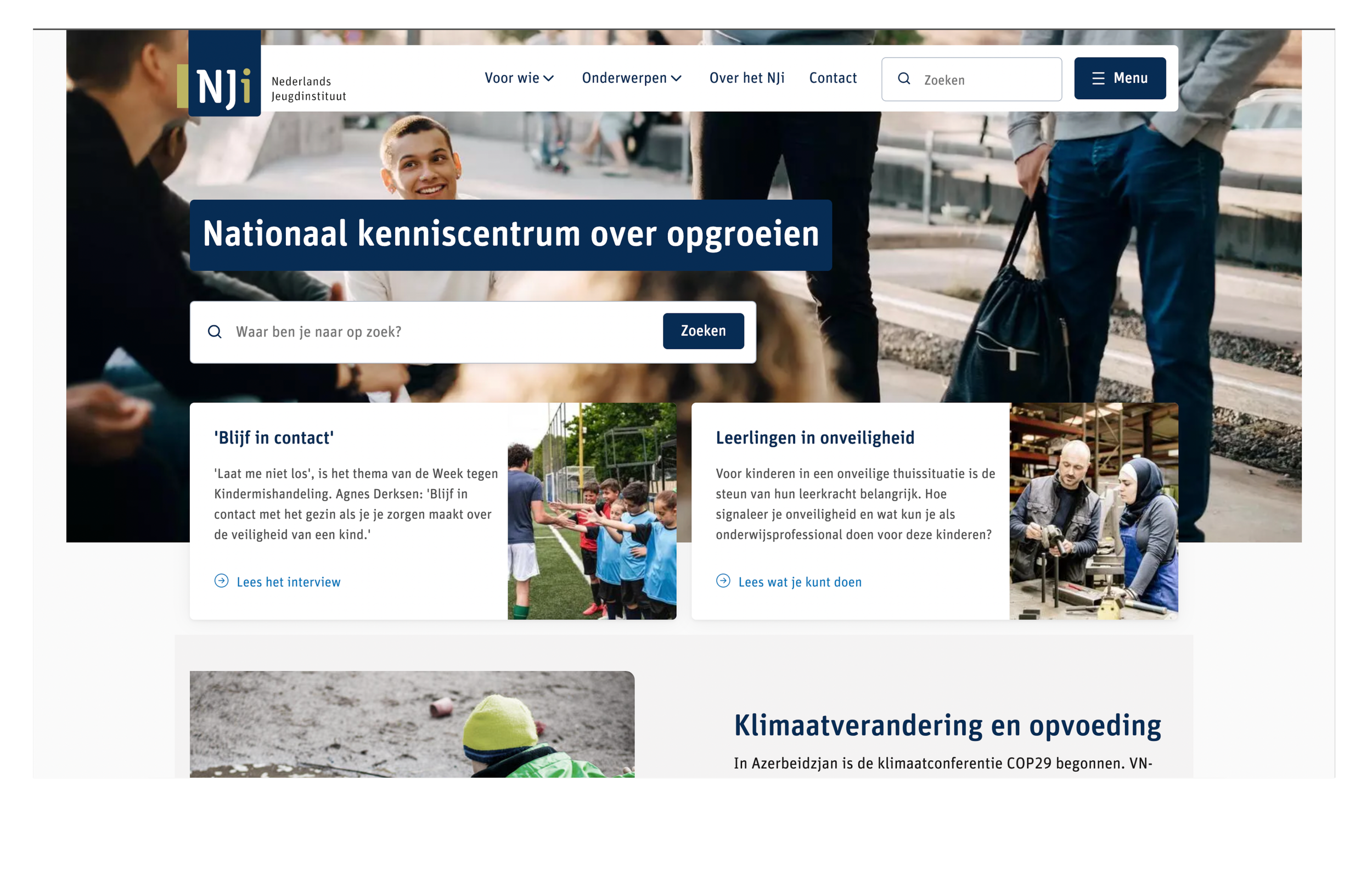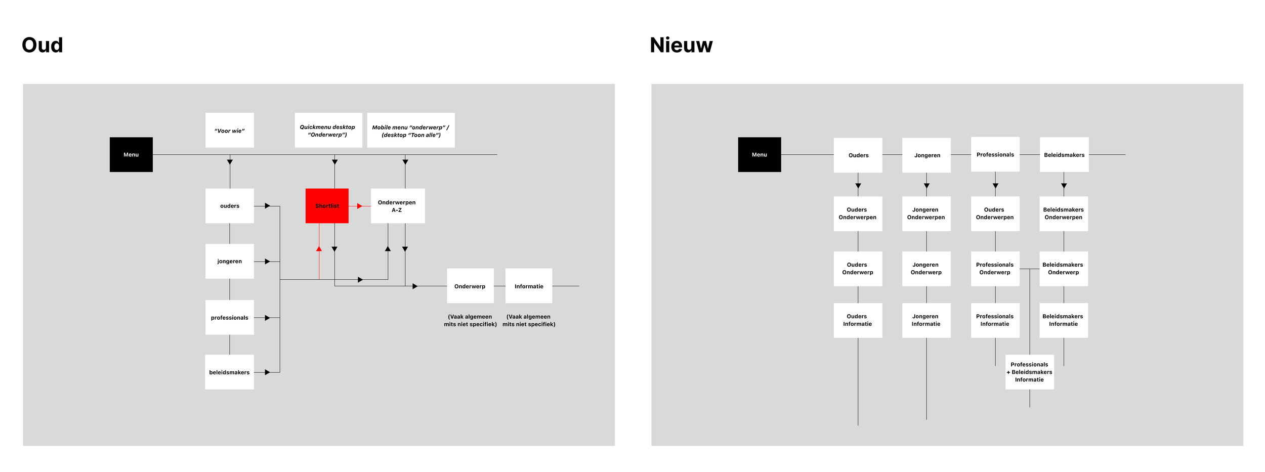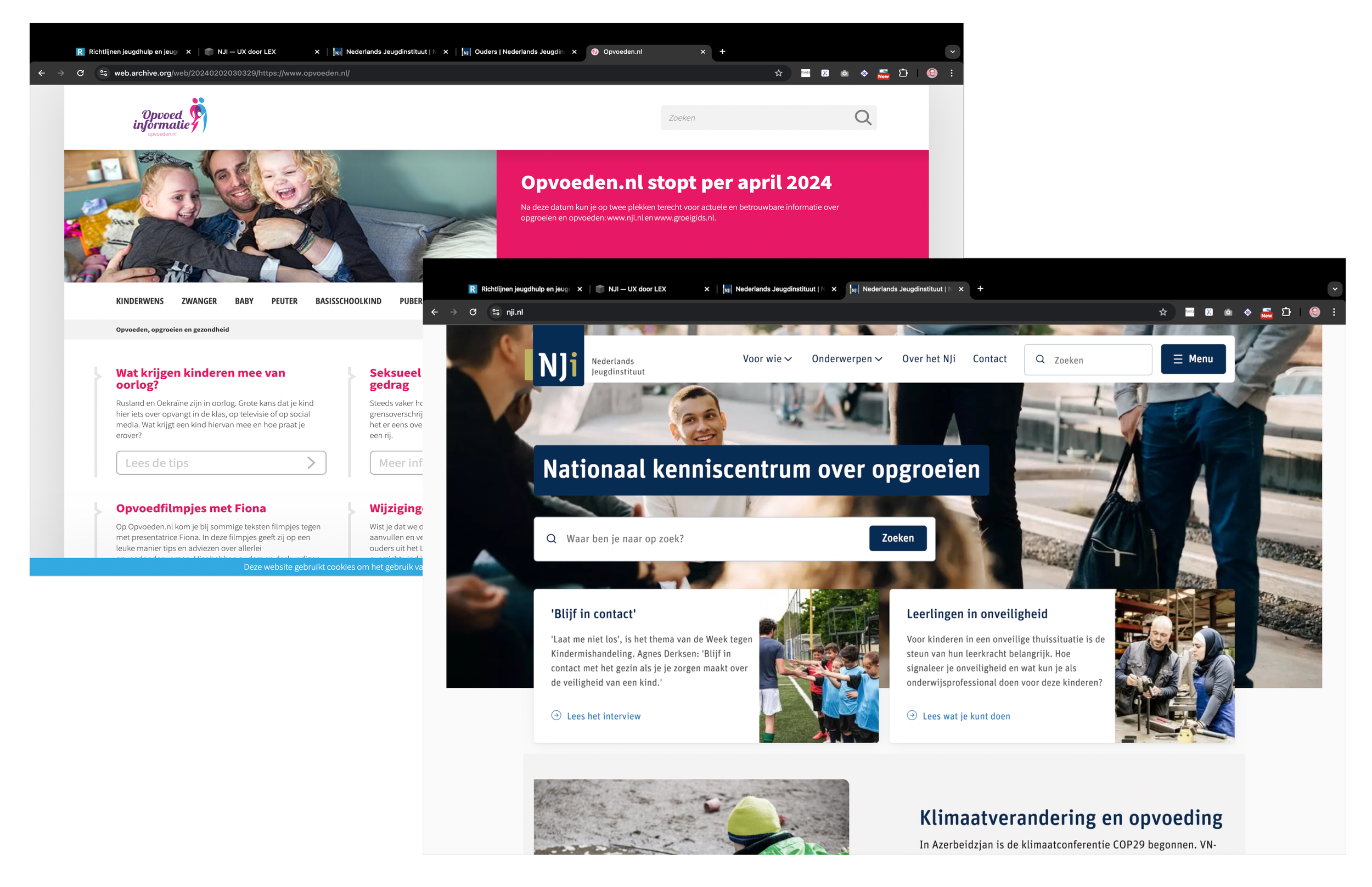 NJI.nl is echter een website vooral gericht op het werkveld Jeugdzorg (professionals) en de grote hoeveelheid informatie voor ouders is niet goed te migreren zonder daarbij te kijken naar een betere structuur zodat elke doelgroep nog steeds de juiste informatie voor zich krijgt.